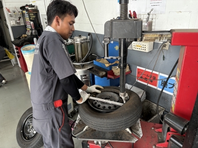 当店の国家整備士より、タイヤの交換作業をさせて頂きます。